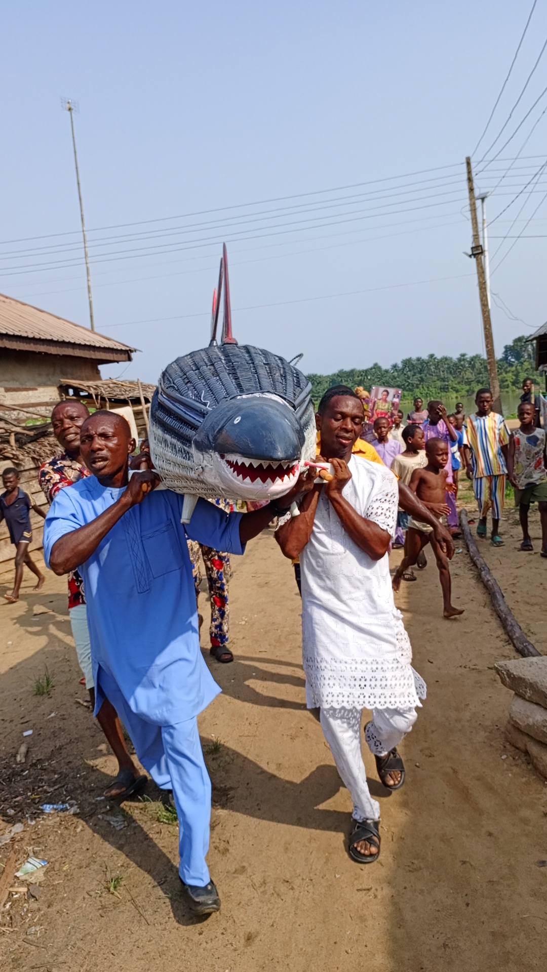 According to residents who spoke with NaijaChoice News, the decision was never about showmanship but a heartfelt way to tell her full story. “This is how we celebrate our own. She lived and died for the water, so the casket tells that story better than words ever could,” one elder explained. The dolphin, a creature tied to the aquatic world of the Niger Delta, perfectly captured her resilience, hard work and deep connection to the local fishing heritage that has sustained generations in Bomadi.