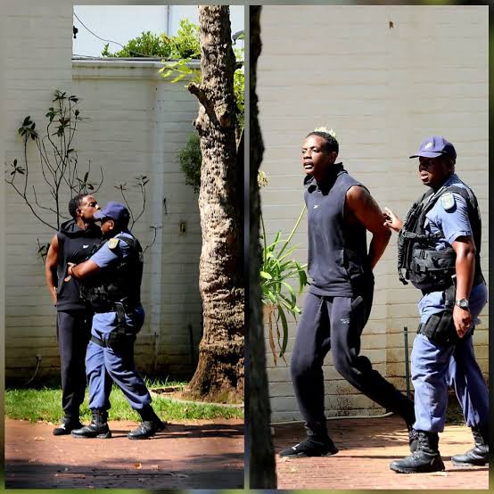 Television news crews showed footage of police officers handcuffing Mugabe and the second suspect shortly before 1pm.