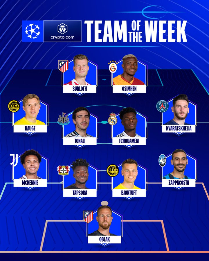 UEFA announced the team on Thursday, recognizing standout performers from across the playoff ties. Osimhen was selected in the forward line alongside Atletico Madrid’s Alexander Sørloth, who impressed with a hat-trick against Club Brugge. Other notable inclusions are Real Madrid’s Aurélien Tchouaméni and Atalanta’s Davide Zappacosta.